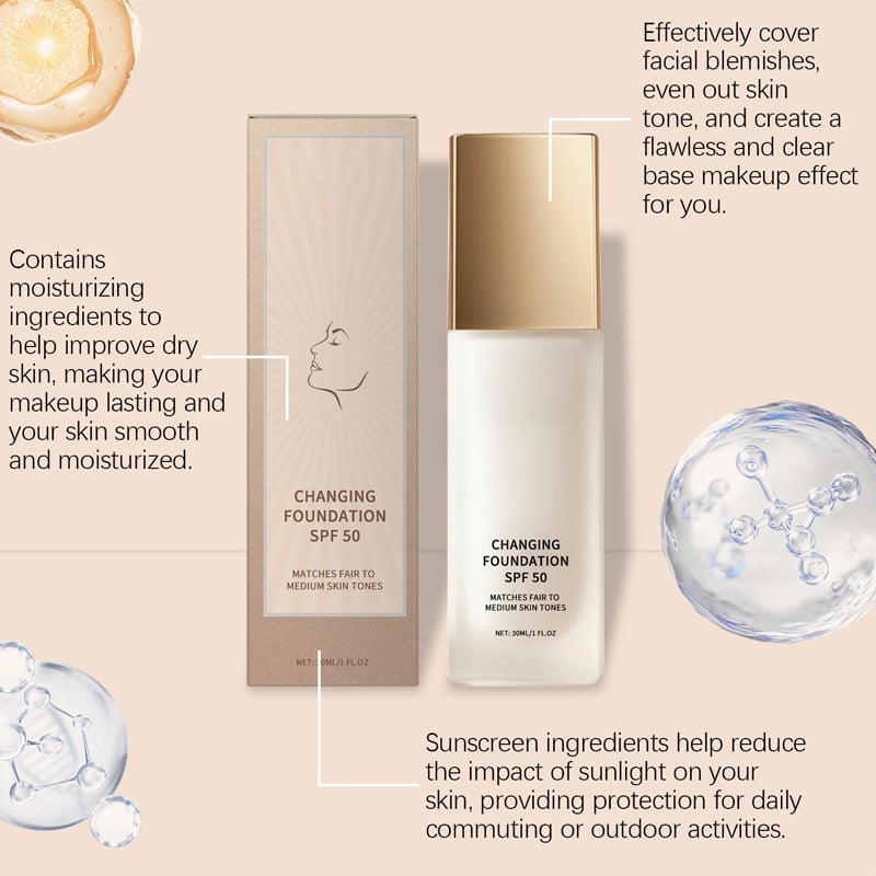 Stop guessing your shade! This innovative foundation is the ultimate fusion of Color Changing and Magic Foundation technology. It features self-adjusting pigments that seamlessly adapt to your unique skin tone upon application, delivering personalized, flawless coverage effortlessly.